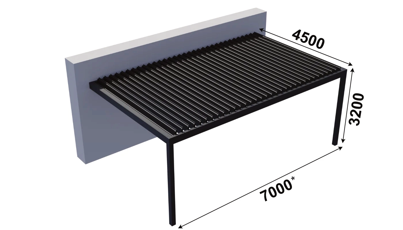EINZELPERGOLA Dachmodul (ohne Pfosten): 7000 mm x 4500 mm (31,5 m²)