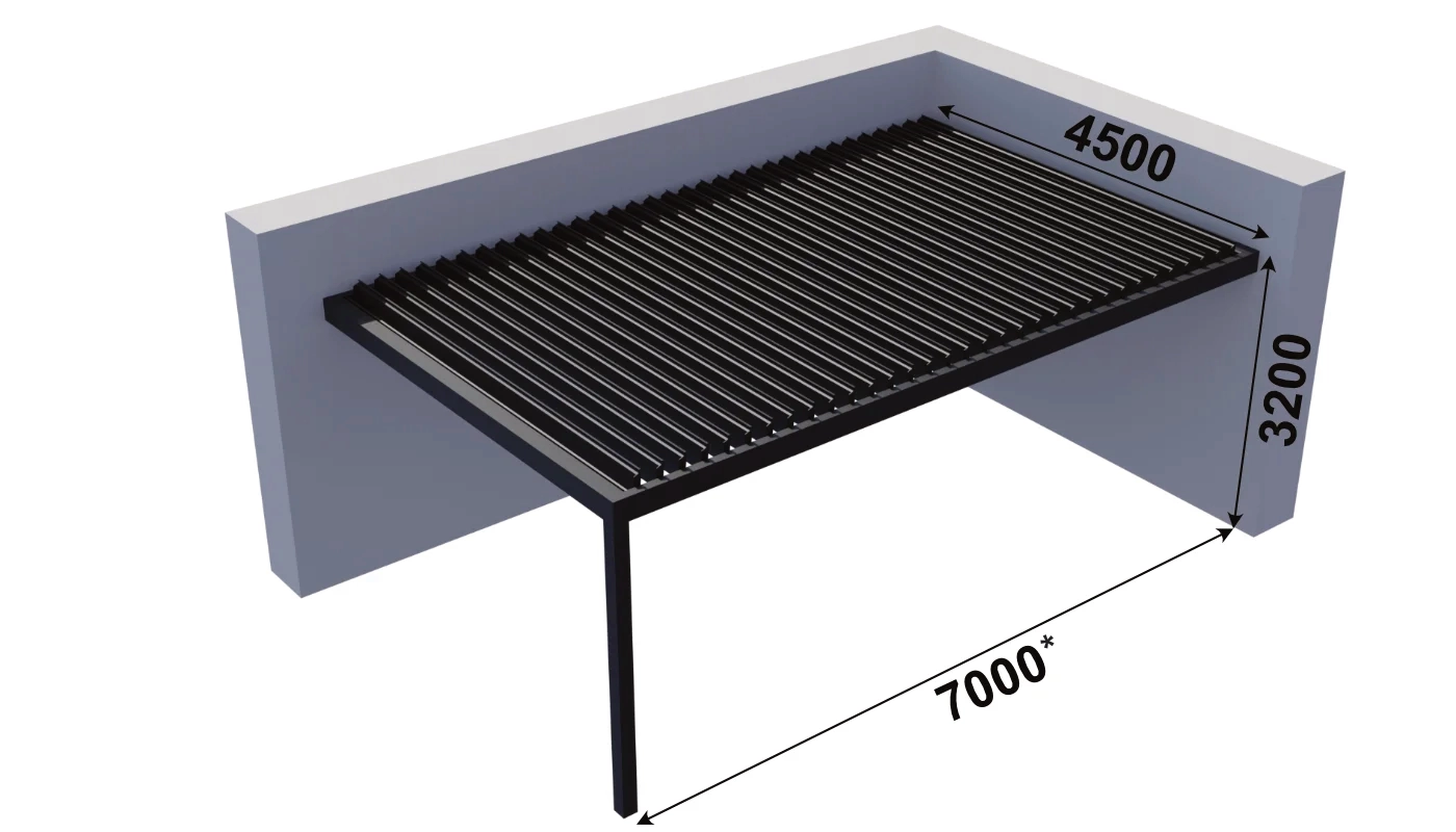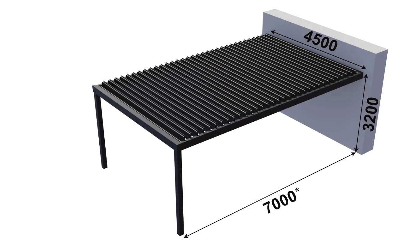 Modernes Schutzprodukt, das die ideale Lösung für Pergolen, Terrassenüberdachungen und mehr darstellt. Die Paneele bieten zusätzlichen Schutz vor Witterungseinflüssen, erhöhen die Privatsphäre und verbessern die Ästhetik jedes Raumes durch ihr beeindruckendes Design. Der Einsatz drehbarer Lamellen, einstellbar von 0 bis 90 Grad, ermöglicht zudem die individuelle Regulierung der Sonneneinstrahlung.