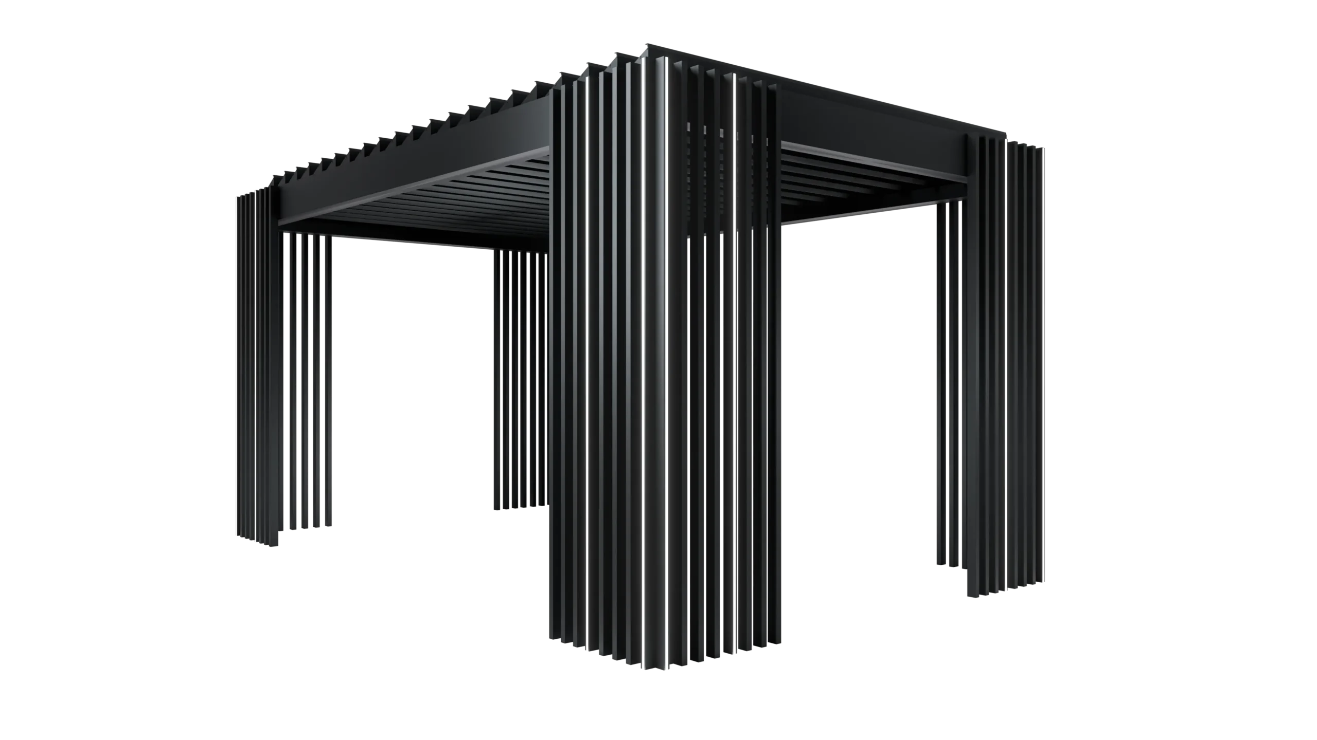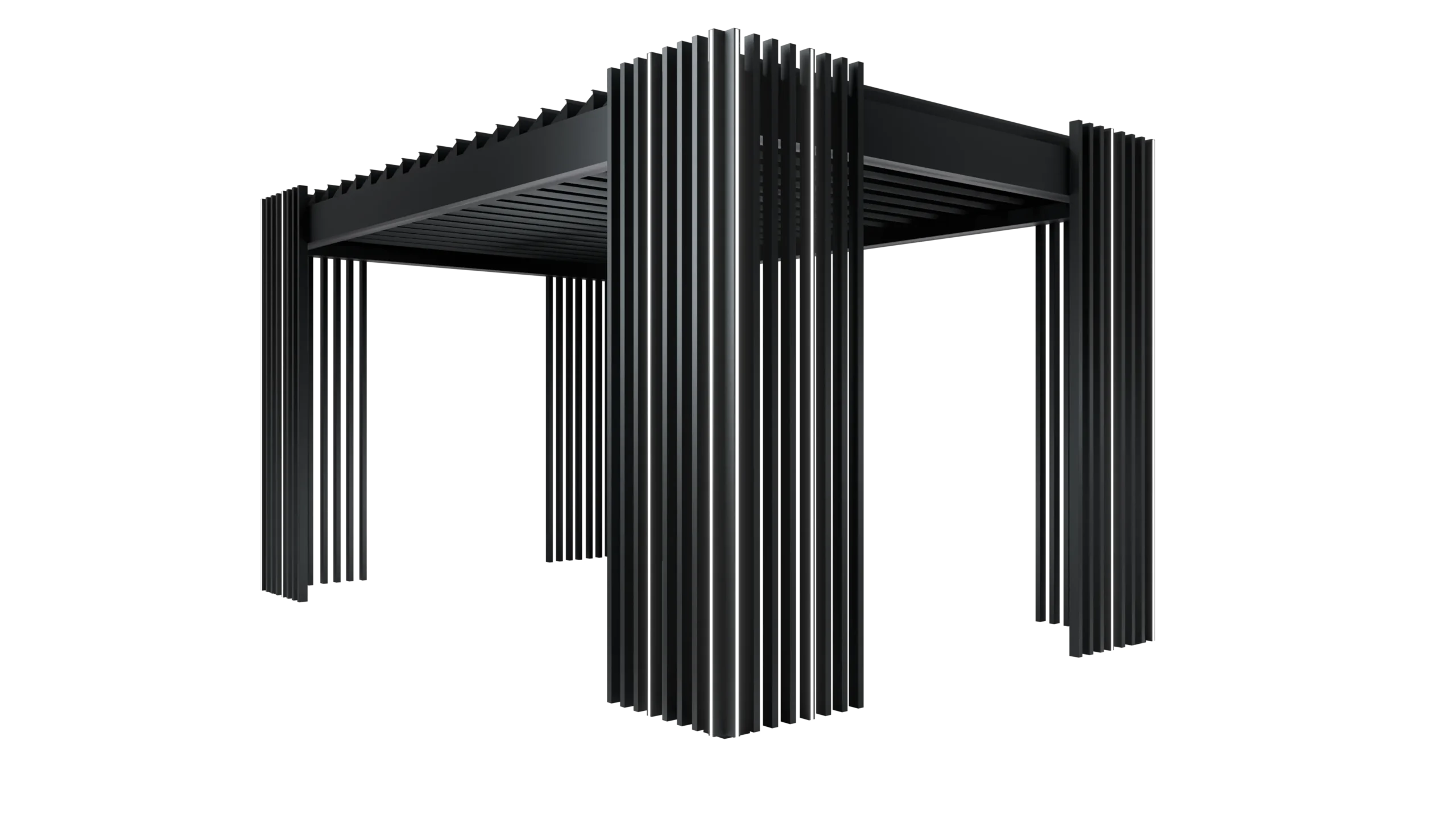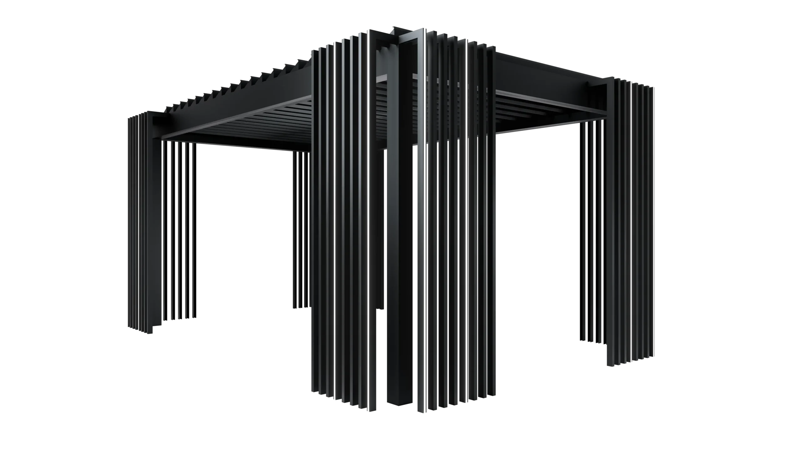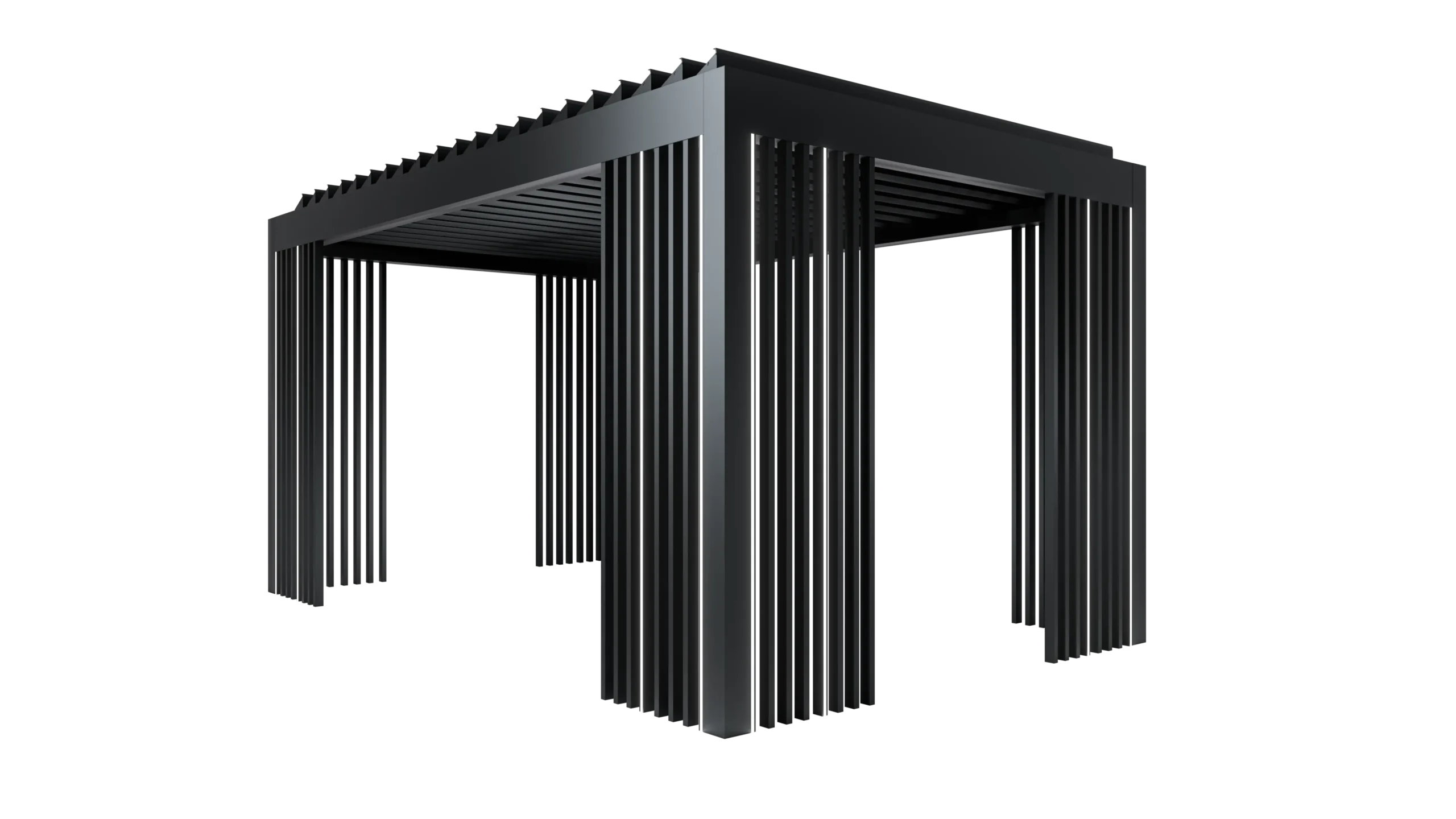 Die Profile können flexibel konfiguriert und in verschiedenen Positionen angeordnet werden, wodurch sich die Lösung an die individuellen Bedürfnisse und den Charakter der Pergola anpassen lässt.
