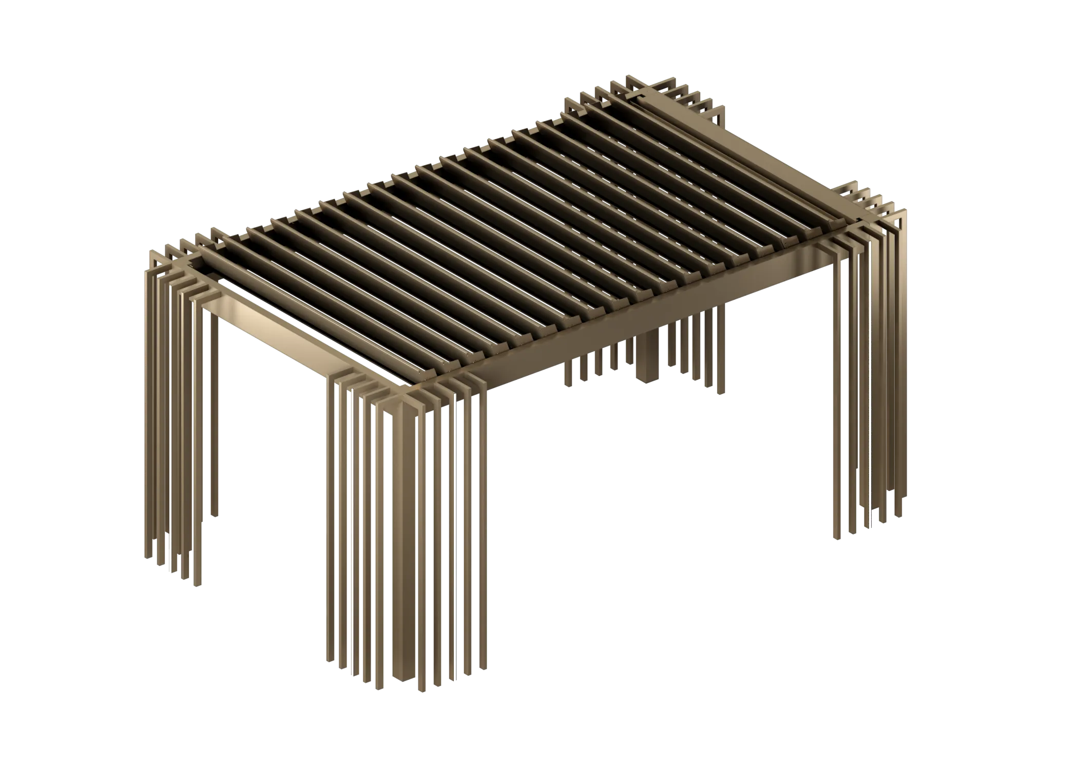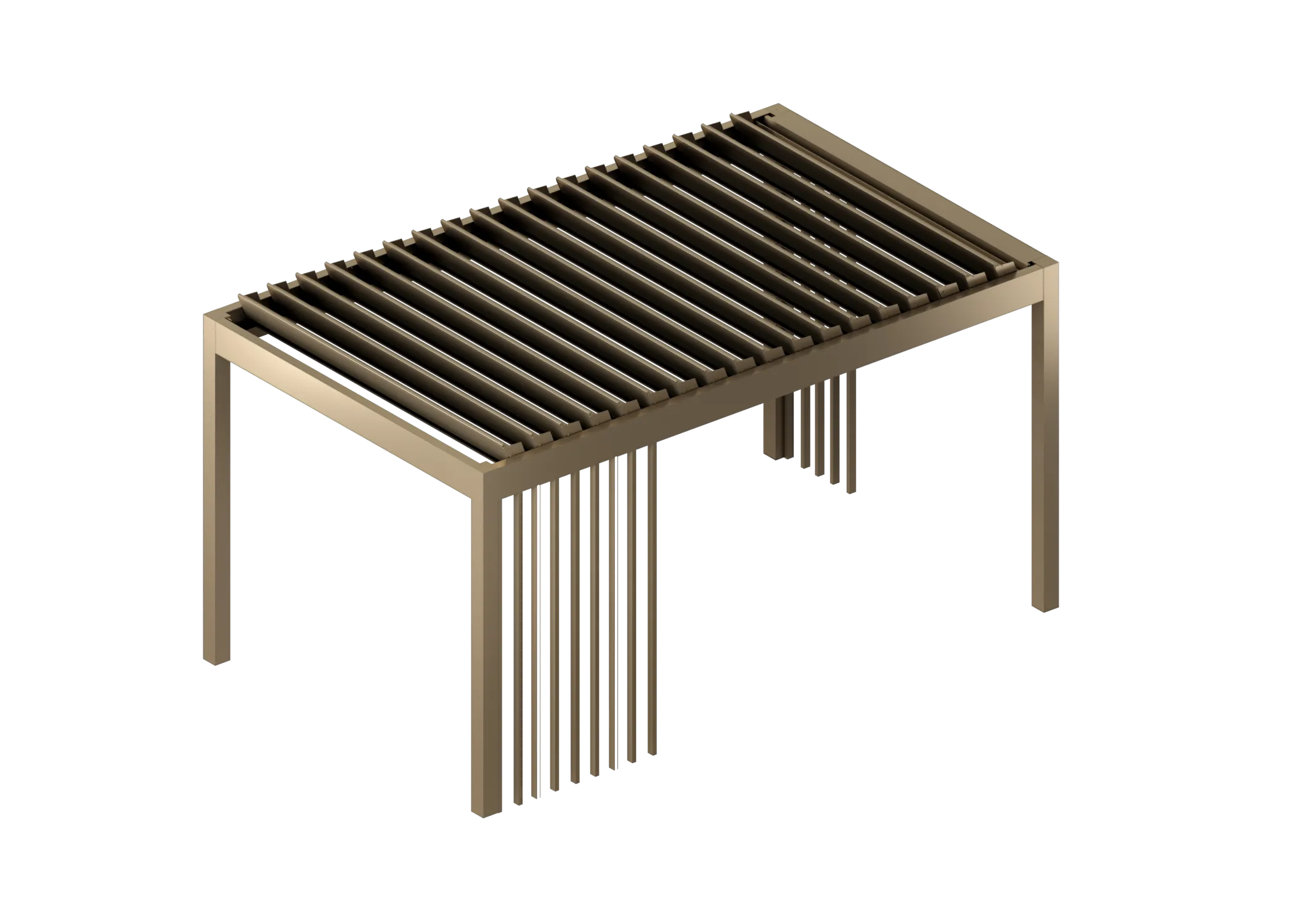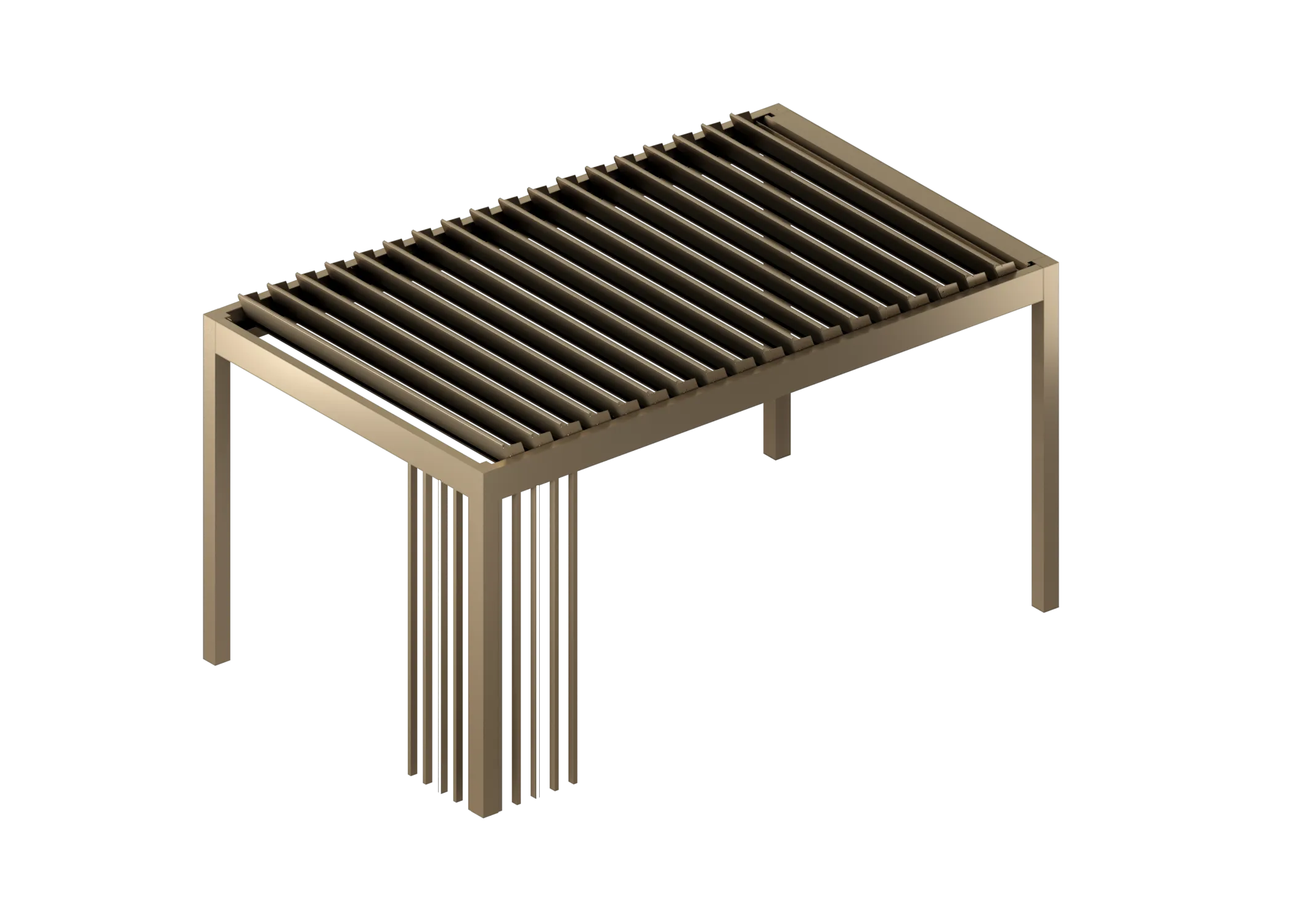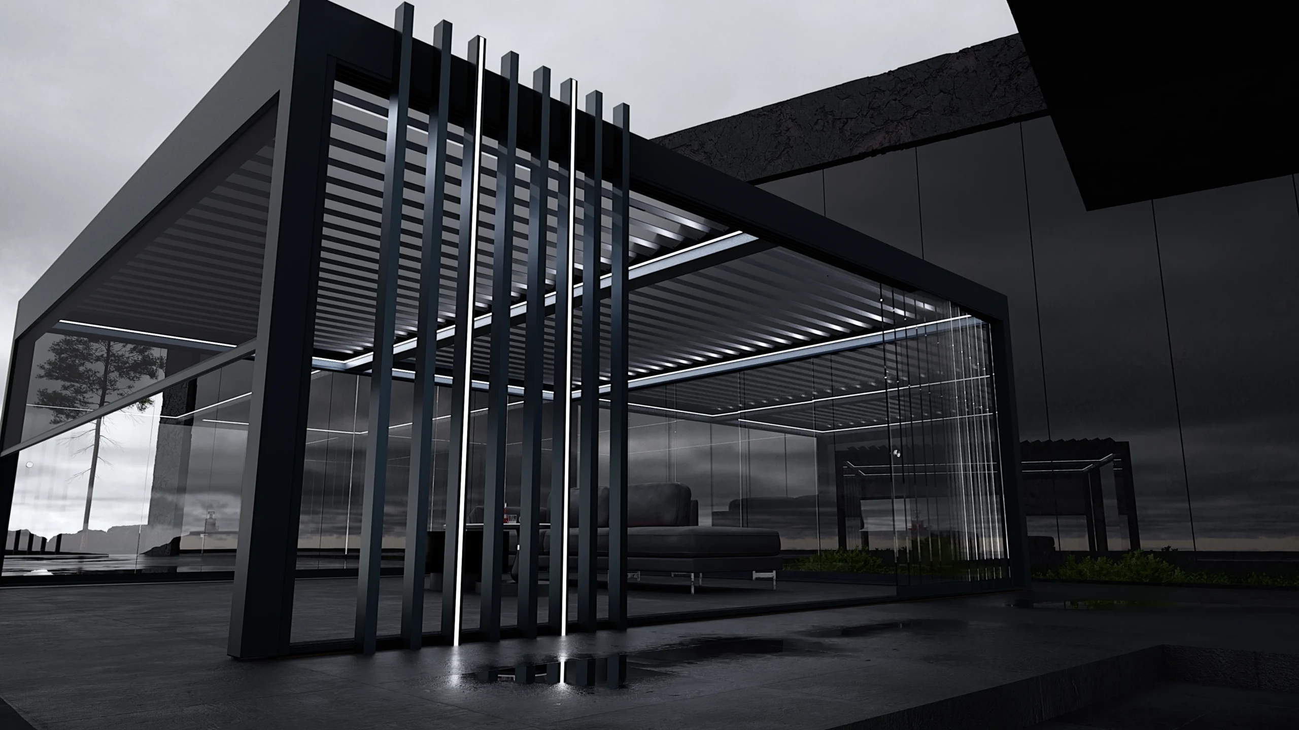 wird die Pergola nicht nur zu einem eindrucksvollen architektonischen Element, sondern auch zu einem vor Sonne und Wind geschützten Raum – bei gleichzeitiger Wahrung von Eleganz und Leichtigkeit der Form.