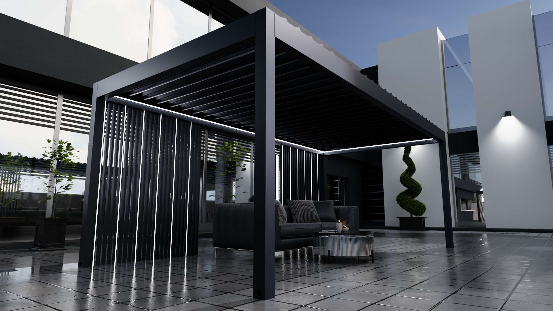 Die Profile können flexibel konfiguriert und in verschiedenen Positionen angeordnet werden, wodurch sich die Lösung an die individuellen Bedürfnisse und den Charakter der Pergola anpassen lässt.
