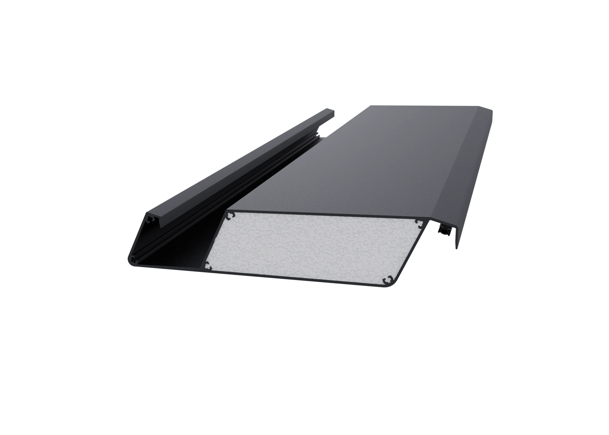 The internal box is a practical and aesthetic solution that allows you to conceal control units and power supplies within the pergola structure. Its use provides easy and convenient access to the installation from inside the pergola, eliminating the need to dismantle roof trims, disassemble the structure, or install control units and power supplies outside the pergola.