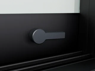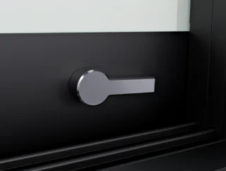System WIN GLASS został wyposażony w od podstaw zaprojektowane pochwyty o okrągłym kształcie, dostępne w dwóch wykończeniach – polerowana stal i czarny mat. Charakteryzują się one wysoką jakością wykonania, komfortem użytkowania oraz płynnym działaniem tafli szkła.