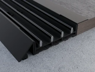 Zastosowanie maskownic dolnych znacząco poprawia walory estetyczne paneli oraz chroni ich krawędzie przed uszkodzeniami mechanicznymi. System wyposażony jest w maskownicę wpuszczaną, która umożliwia montaż prowadnicy dolnej poniżej powierzchni podłogi – na przykład w desce tarasowej lub posadzce.