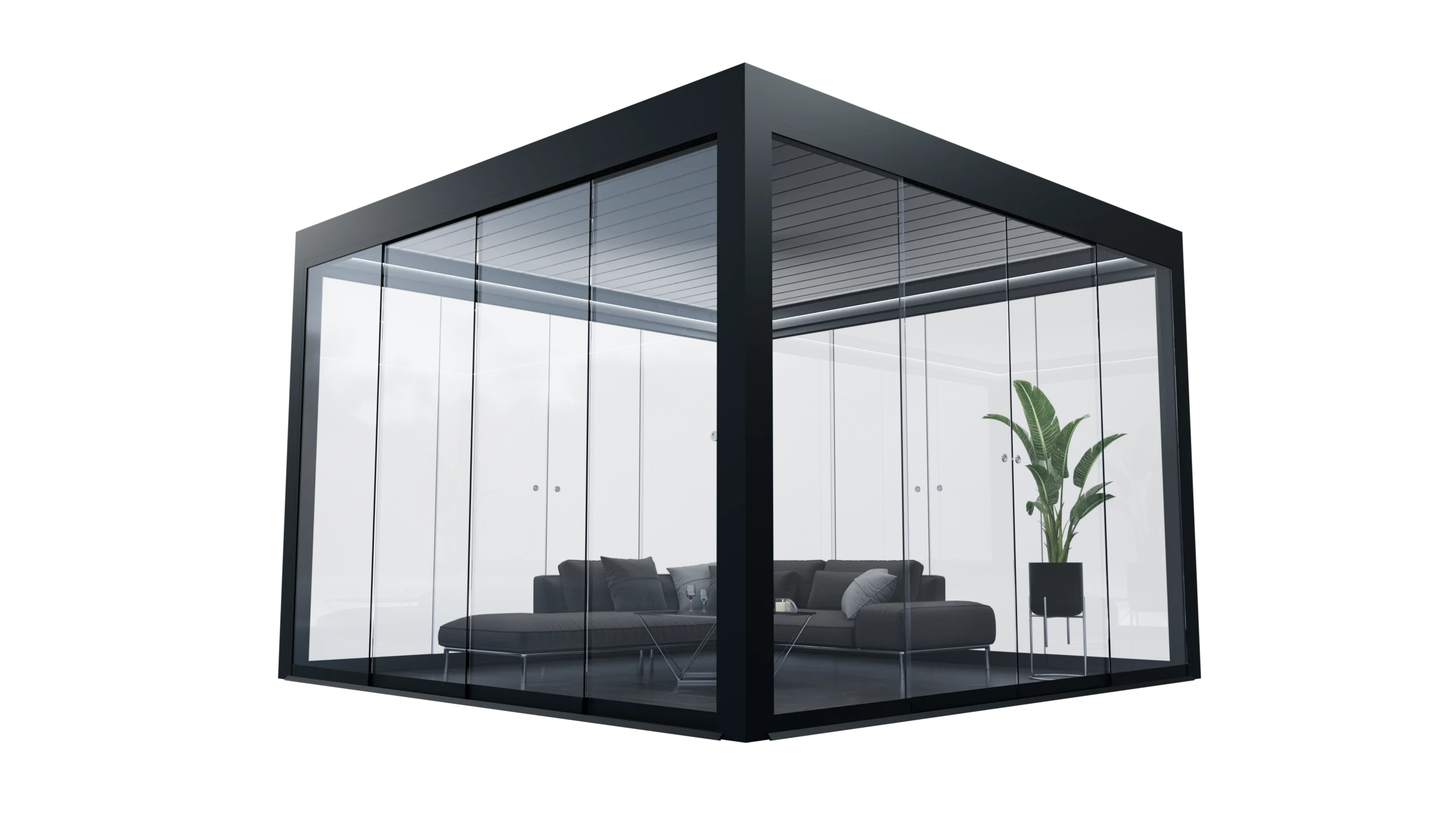 System WIN GLASS został zaprojektowany z myślą o perfekcyjnej integracji z pergolami WIN CLIMATIC oraz systemem rolet screen WIN SCREEN. Dzięki temu możliwe jest połączenie szklenia i rolety we wnęce pergoli, bez wystających skrzynek rolety poza ramę pergoli— tworząc rozwiązanie, które zachwyca zarówno funkcjonalnością, jak i estetyką.