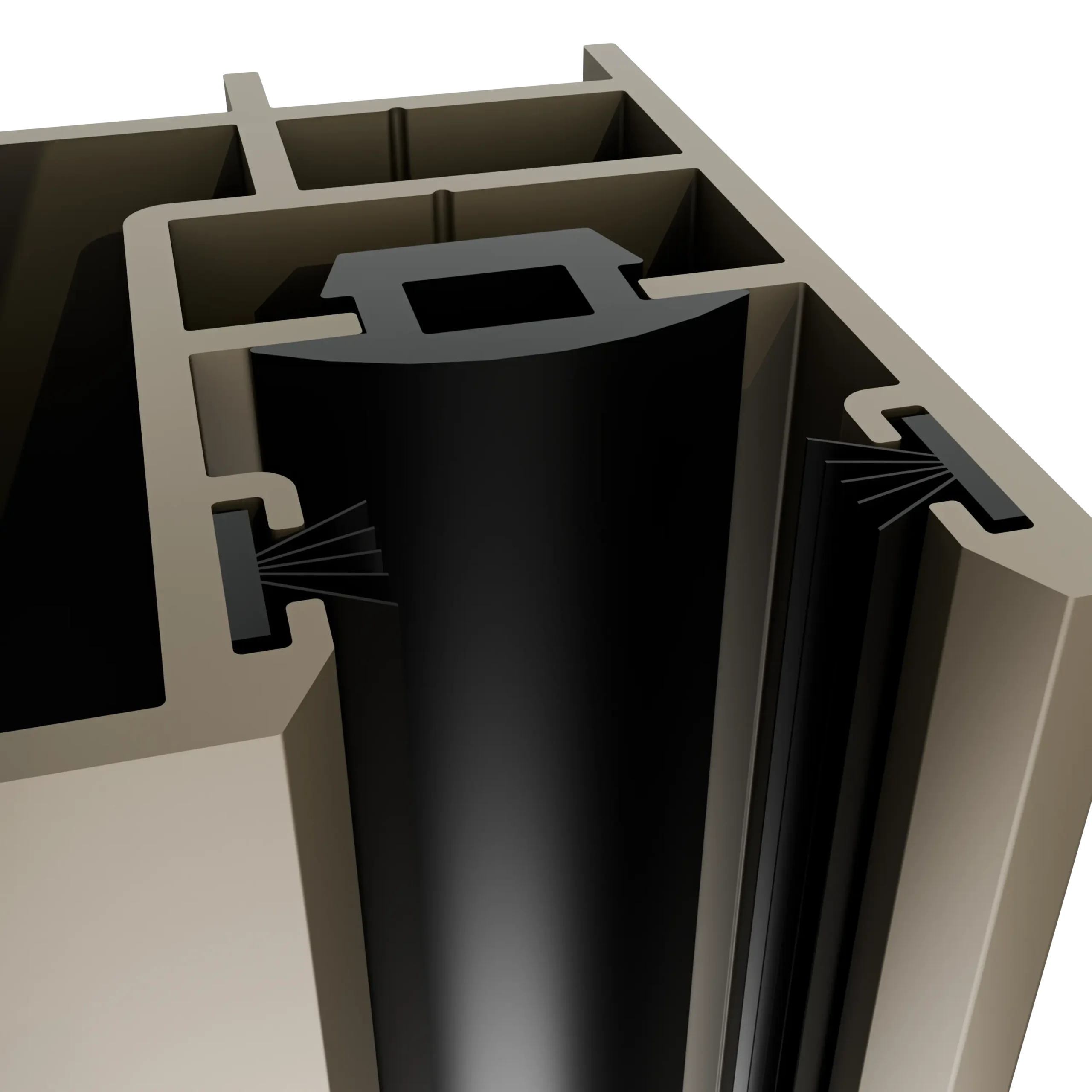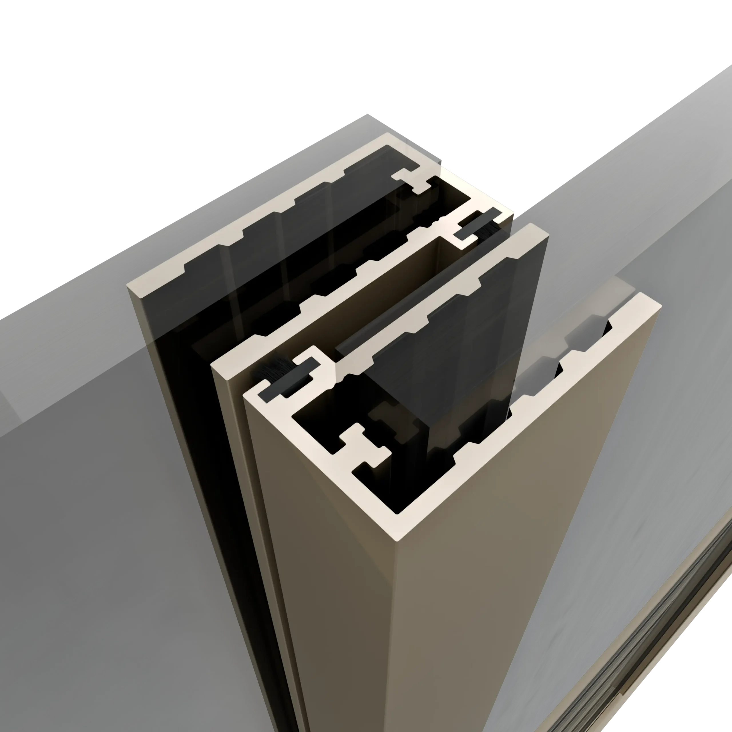 Profil międzyszybowy w wariancie rozsuwania podwójnego, stosowany na taflach wewnętrznych – zamykających, został wyposażony we wzdłużny pochwyt ułatwiający otwieranie i zamykanie systemu. Innowacyjnym rozwiązaniem jest zastosowanie uszczelek magnetycznych, które całkowicie eliminują szczelinę przy zamknięciu szklenia, znacząco podnoszą szczelność oraz komfort użytkowania. Dodatkowo gumowana powierzchnia uszczelek sprawia, że domykanie tafli jest płynne i wyjątkowo ciche.