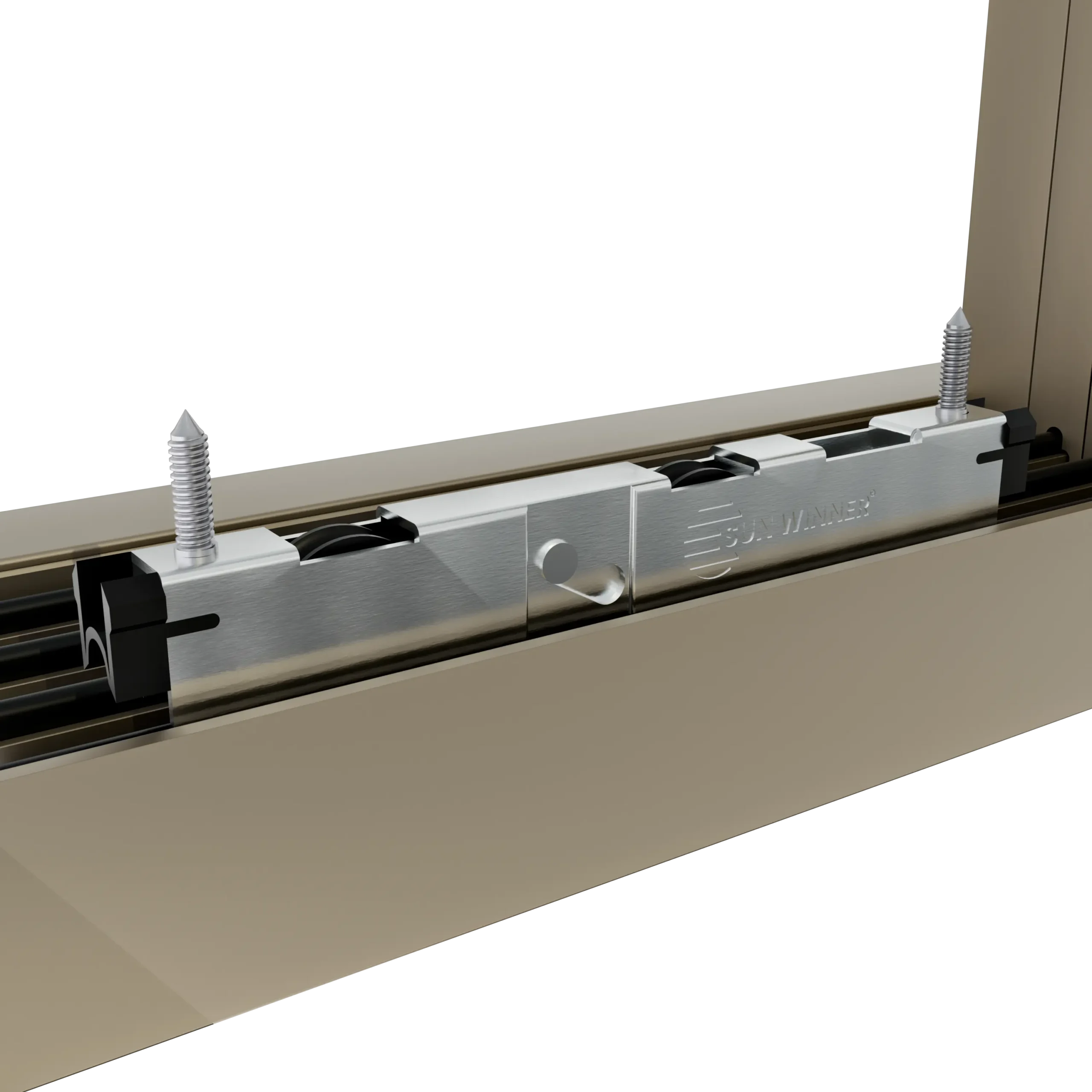 Dolne prowadnice systemu WIN GLASS wyposażone są w anodowane wkładki prowadzące rolki, co eliminuje wycieranie powłoki proszkowej, a jednocześnie sama podstawa prowadnicy zachowuje estetyczny wygląd malowanego proszkowo profilu w kolorze całego systemu szkła bądź pergoli.