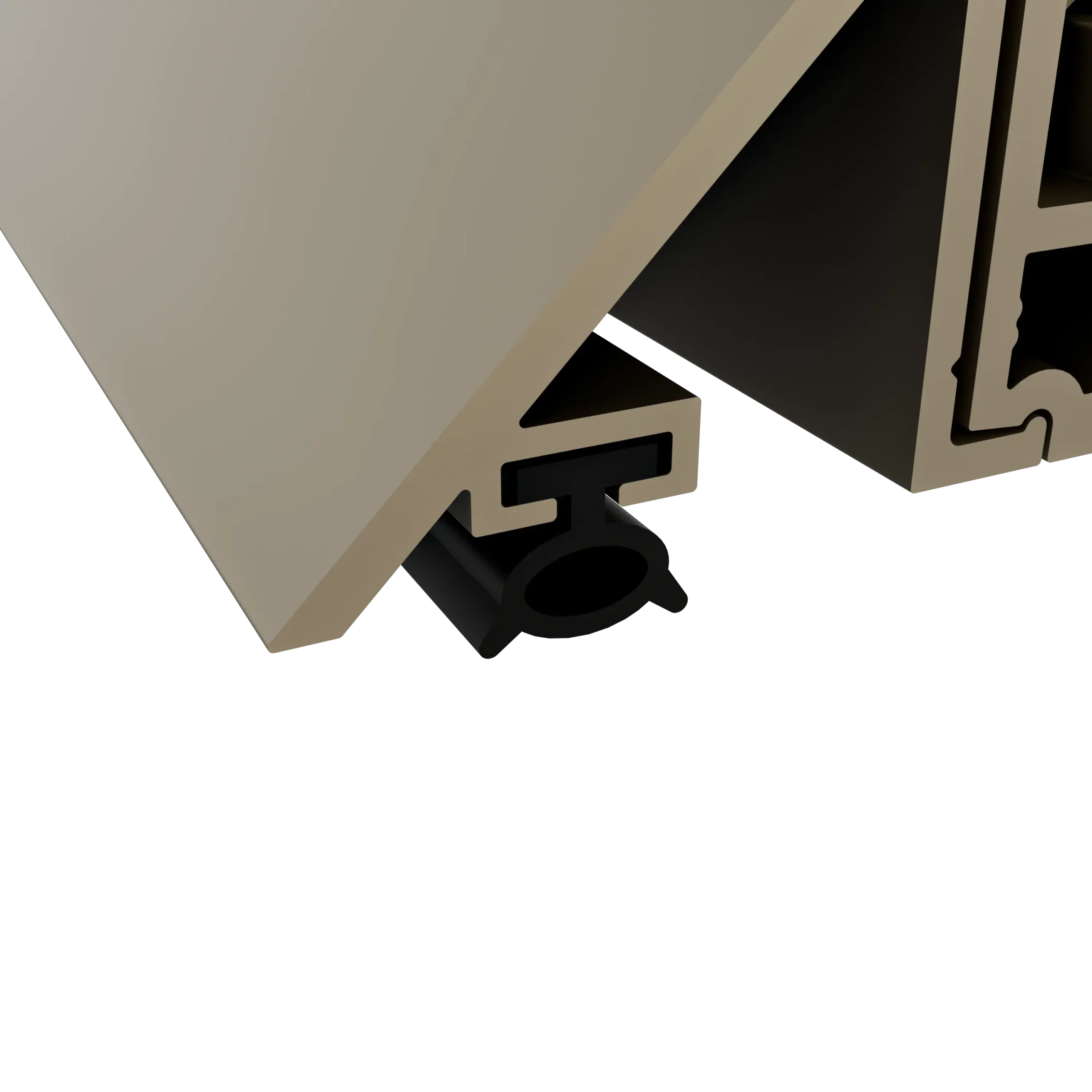 Prowadnica górna systemu posiada miejsca na dwie uszczelki gumowe. Po jej dokręceniu, np. do ramy pergoli, uszczelki zostają lekko dociśnięte, co skutecznie zapobiega przedostawaniu się wody pomiędzy profil ramy a prowadnicę górną. Wycisza drgania między profilami.