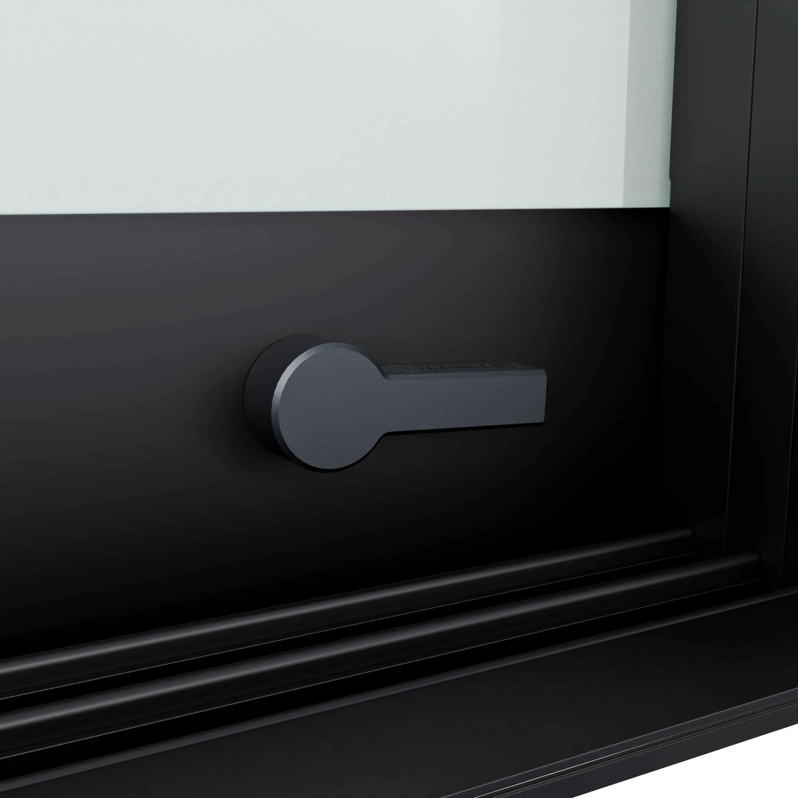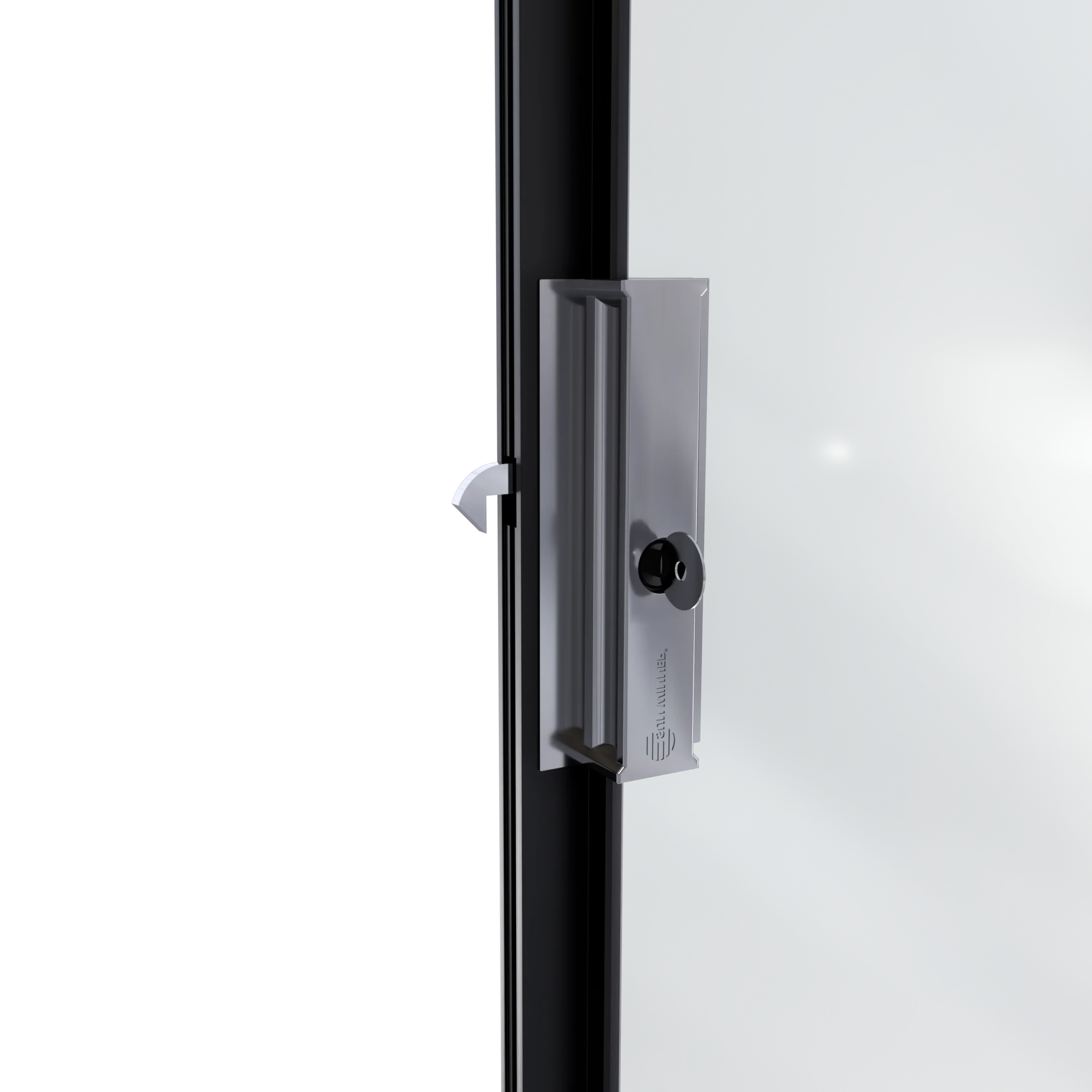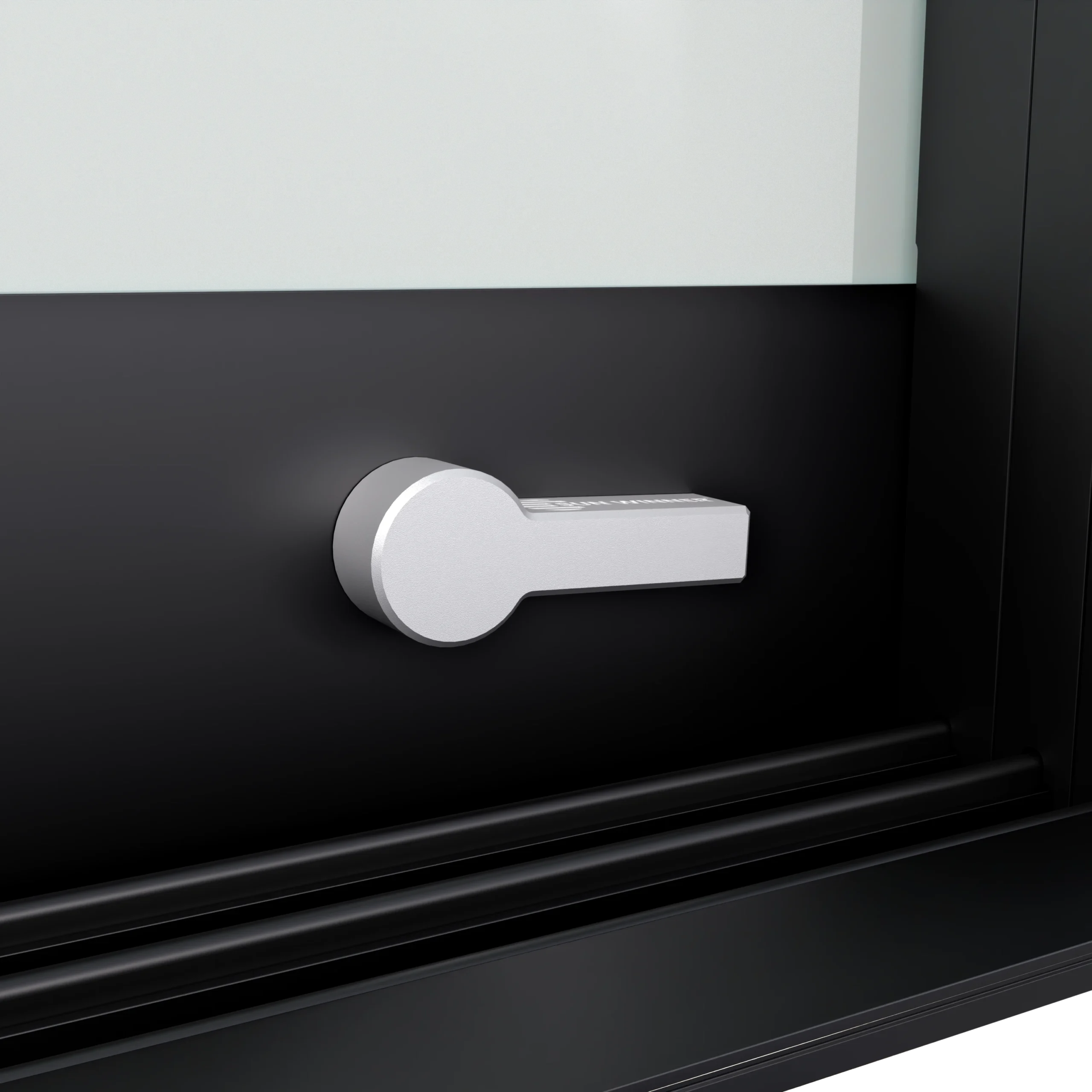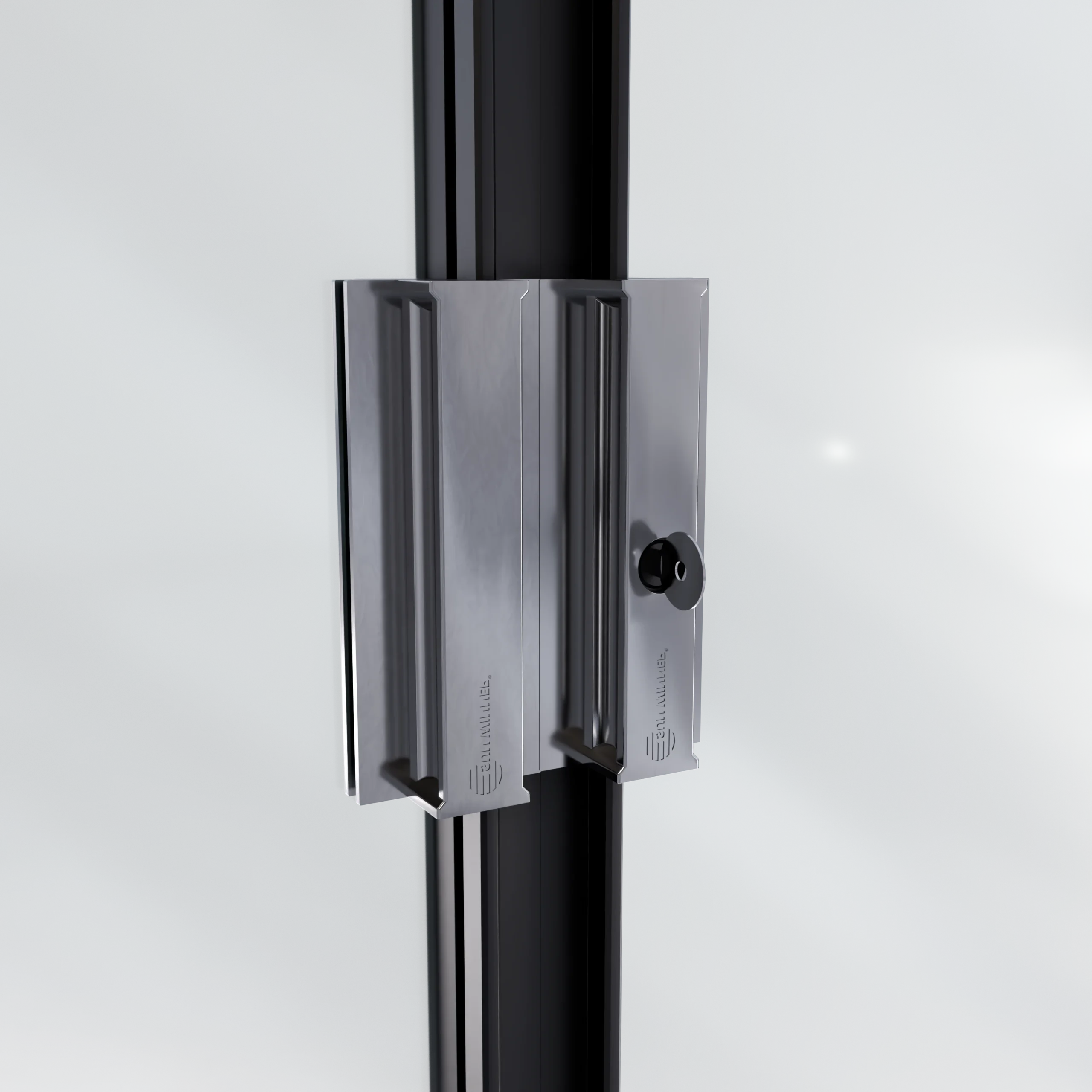 Do wariantu rozsuwania jednostronnego i dwustronnego przewidziano zamek górny z pokrętłem od strony wnętrza i kluczykiem od strony zewnętrznej. Występuje w dwóch kolorach – polerowana stal oraz czarny mat – spójnych z pochwytami. Został wykonany w formie odlewu, bez widocznych śrub łączących, co gwarantuje estetyczny wygląd i solidność.